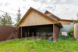 На участке находится: железный навес на два автомобиля, теплица, сарай, бытовка.