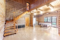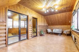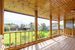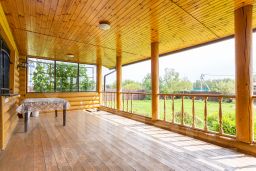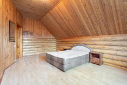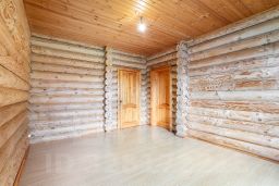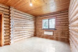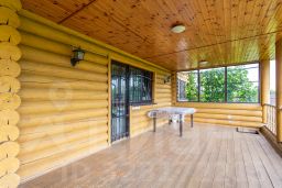 Дом был построен из ОЦИЛИНДРОВАННОГО БРЕВНА 280 мм. Фундамент ленточный около 1.5 метров по всему периметру дома включая веранду. Пол лаги 60 см., фанера 18 мм., потом утеплитель, подложка, ламинат. Забор толстый профнастил на ленточном фундаменте. Откатные ворота.