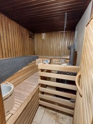 - Первый этаж - кухня-столовая, комната отдыха (с печью-"буржуйкой"), санузел, душевая и парилка (РУССКАЯ БАНЯ) с дровяной печью, кладовая комната.