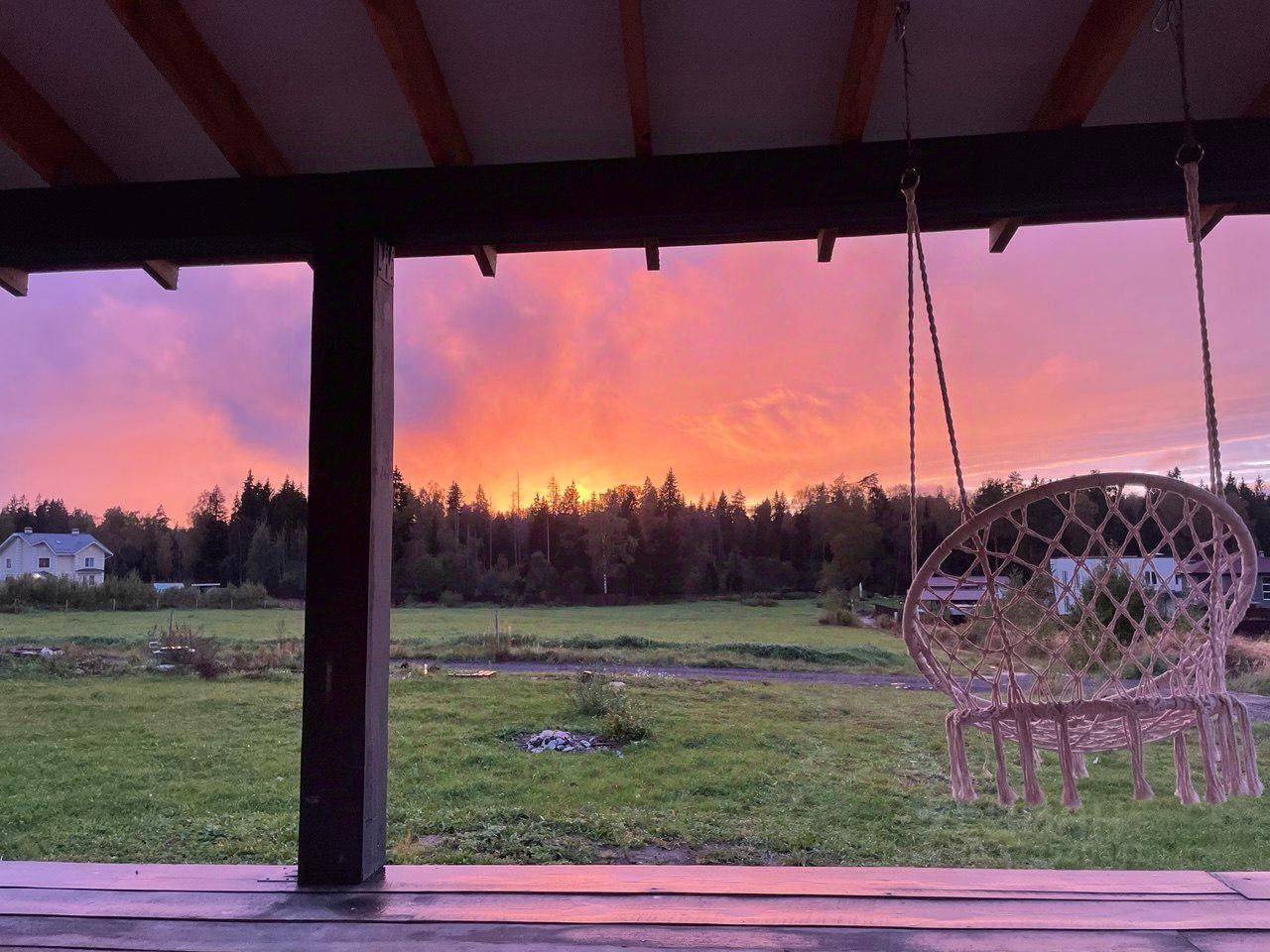 Роскошный вид на лес и поле, идеальный для спокойного отдыха и наслаждения закатами.