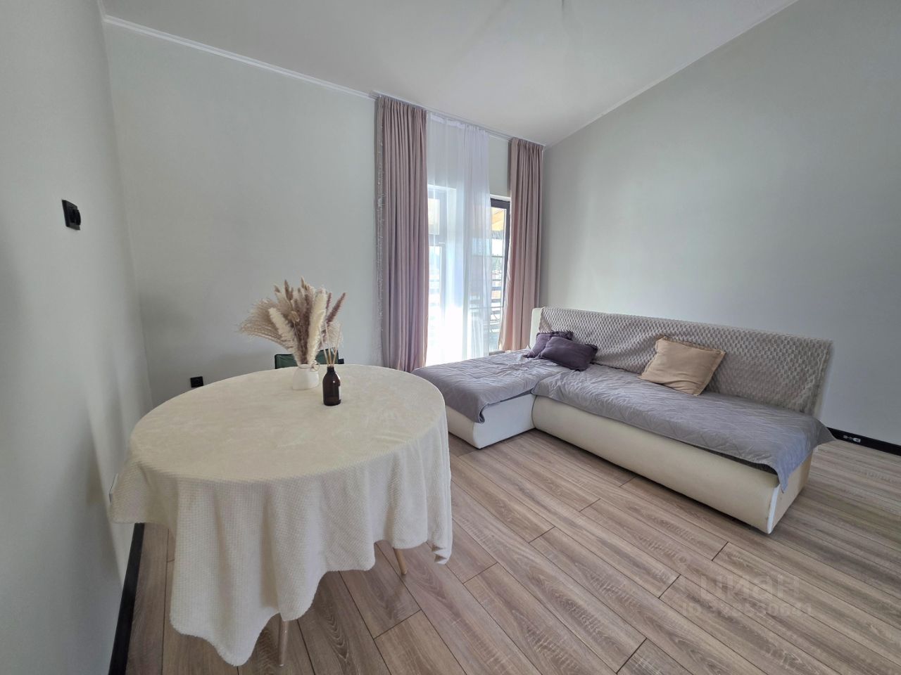 - Панорамные окна и высокие потолки создают ощущение простора и света.
