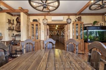 На территории расположен сам коттедж 337 кв.м, баня 106 кв.м с отдельной котельной и отдельным крылом для проживания обслуживающего персонала, мангальная зона, беседка, гараж на 2 автомобиля, вольер для собак, пруд.