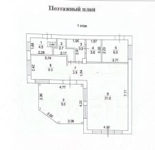 1 этаж: прихожая, гардеробная, кухня, кабинет, санузел, гостиная, балкон.