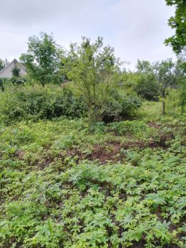 По периметру — плодовые и декоративные кустарники. Штакетник. Высокое не затопляемое место.