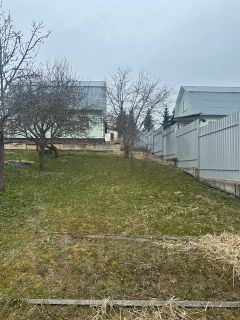 Участок 12 соток, огорожен, металл на фундаменте, двое въездных ворот с площадкой для парковки.