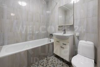 Санузел выполнен в светлых тонах и полностью оборудован сантехникой.