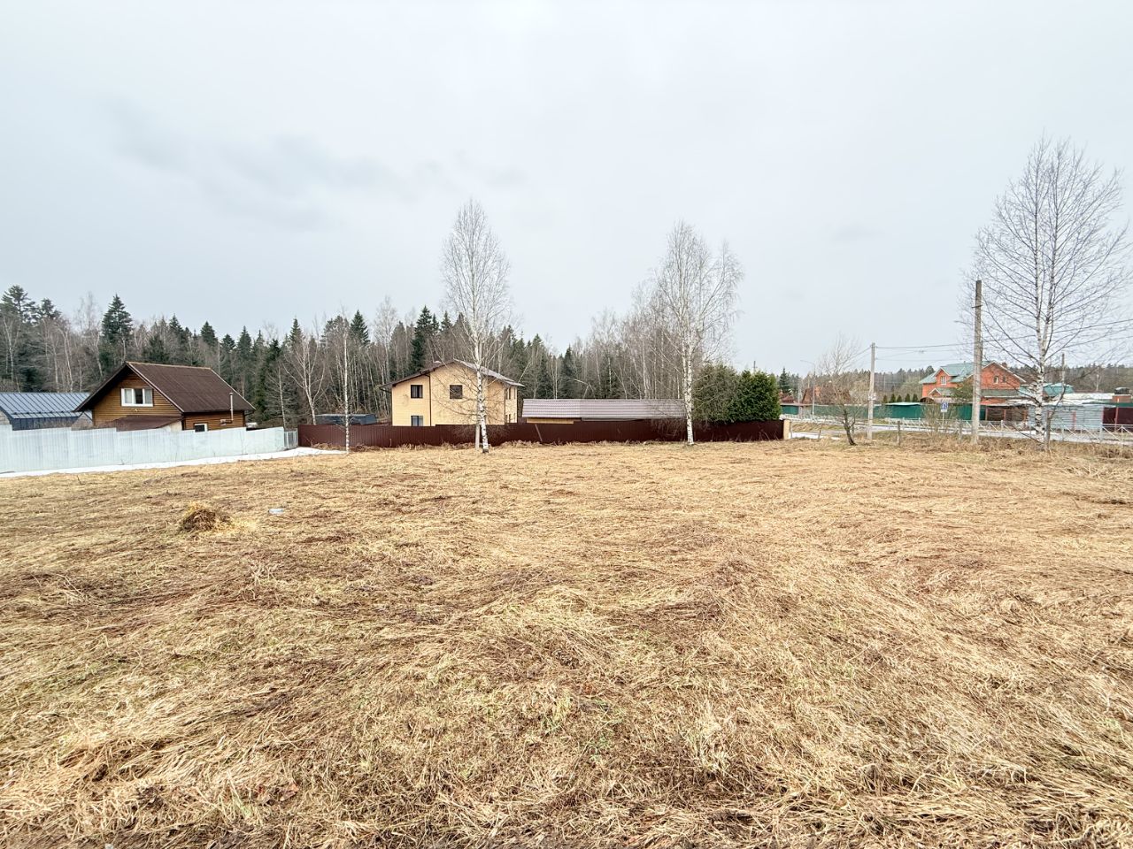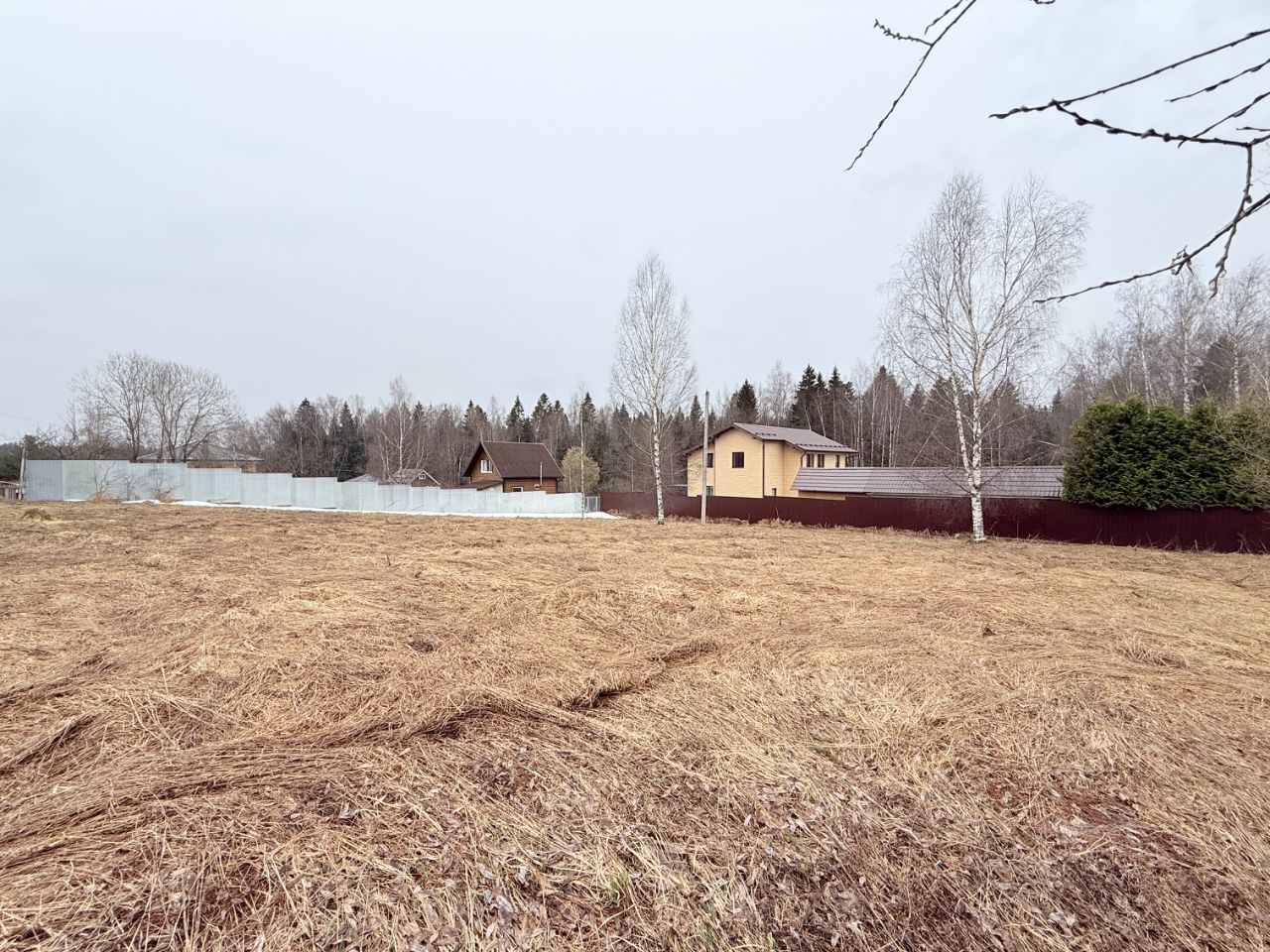 Участок без строений, угловой, правильной прямоугольной формы, размеры около 31,5 х 41 м, с двух сторон огорожен заборами соседних участков. Межевание есть. Электричество по границе участка. Есть возможность присоединить к участку дополнительно 3 сотки. Участок подходит для строительства на нем жилого дома для сезонного или постоянного проживания.