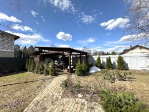 •На участке есть баня, с купелью на террасе, навес под автомобильный транспорт, постройка для хоз. нужд и инструментов, декоративные деревья.Перед участком вдоль забора отсыпан дополнительный паркинг на 5 -6 машиномест.