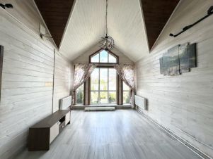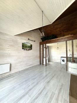 •Дом каркасный, с высокими потолками и вторым светом в зоне гостиной, две изолированные комнаты, просторная гостиная с зонированной кухней, с/у с душевой кабиной, пластиковые окна, внутренняя отделка, частичная мебель (всё, что на фото), установлена и подключена вся сантехника, железная входная дверь, веранда.