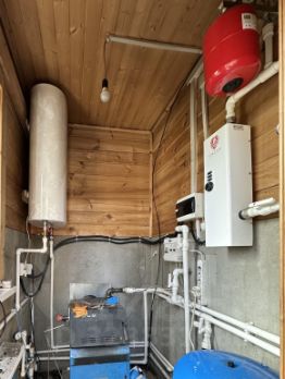 •Коммуникации: электричество 15 кВт, колодец, электрический и твердотопливный котел, водонагревательный бойлер, септик.