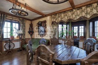 На территории расположена баня 106 кв.м с отдельной котельной и отдельным крылом для проживания обслуживающего персонала, мангальная зона, беседка, гараж на 2 автомобиля, вольер для собак, пруд.