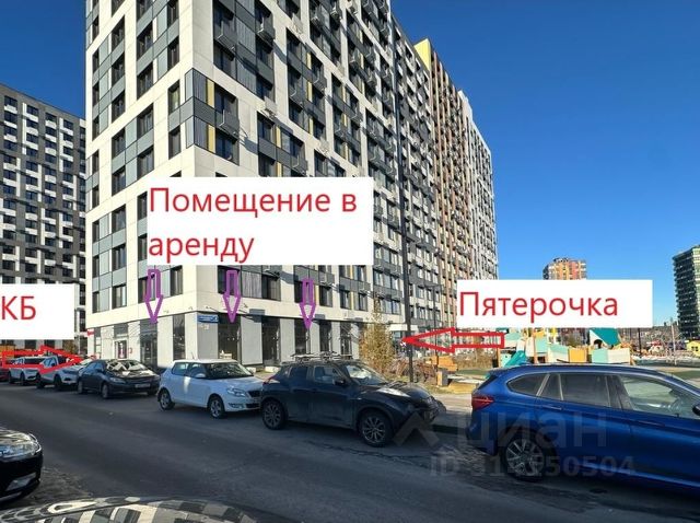 первый этаж. высокий пешеходный трафик- рядом детский сад, пятерочка, красное белое. по запросу - отправлю видео. в жилом комплексе построены и заселены 8 домов. проектом предусмотрено 18 корпусов. потолки 4,5 метра, 12кВт. отопление - центральное. мокрые точки - есть. витринные окна. прямая аренда